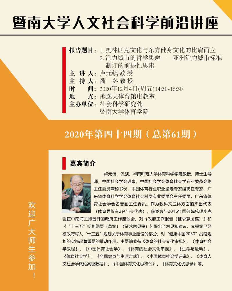 暨南大學(xué)人文社會(huì)科學(xué)前沿講座2020年第四十四期(總第61期)