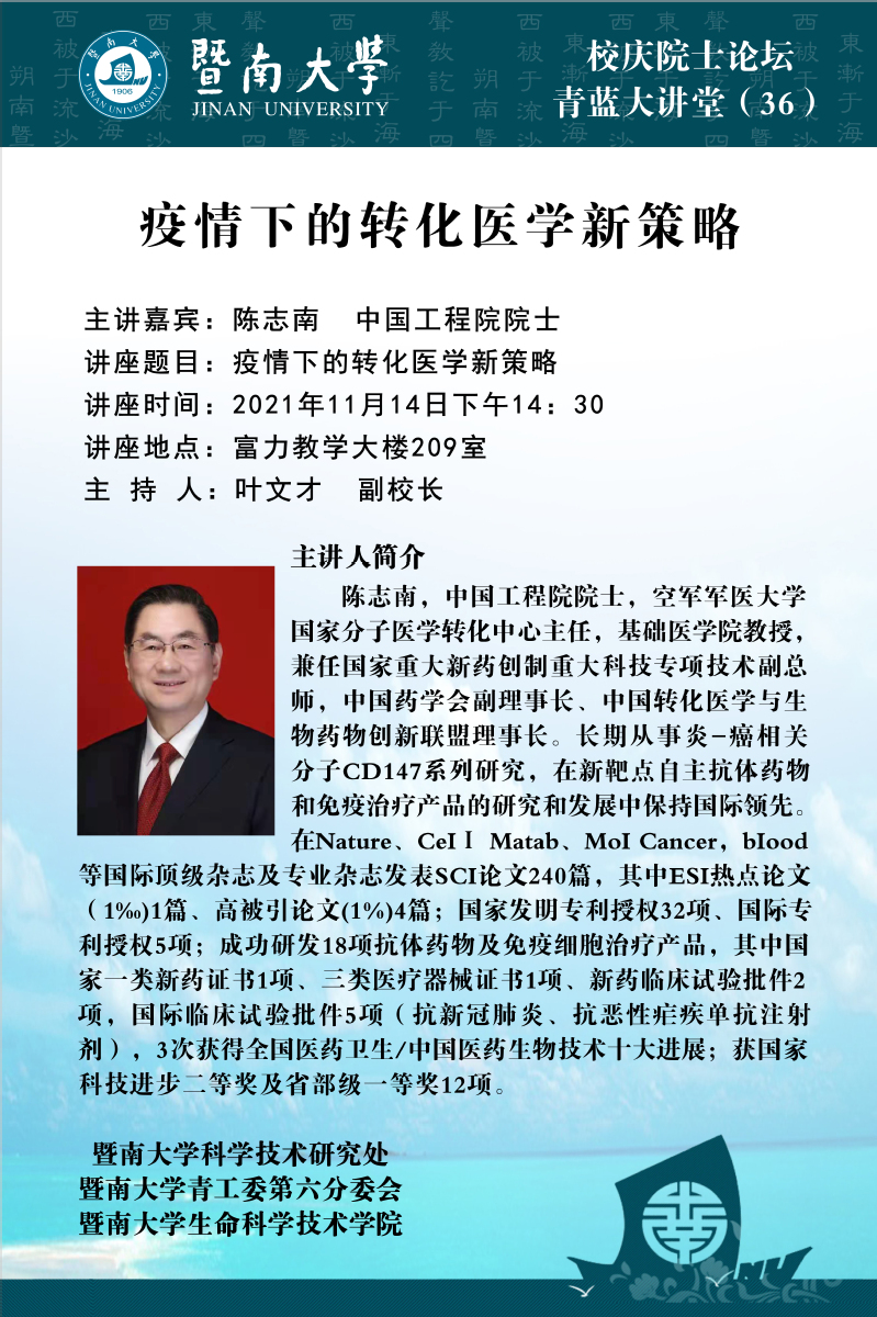 校慶院士論壇(二):疫情下的轉(zhuǎn)化醫(yī)學(xué)新策略