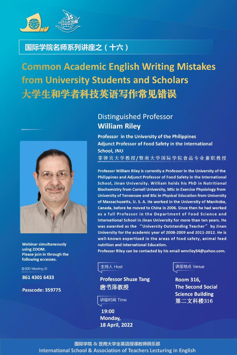 國(guó)際學(xué)院名師系列講座之(十六):大學(xué)生和學(xué)者科技英語(yǔ)寫(xiě)作常見(jiàn)錯(cuò)誤
