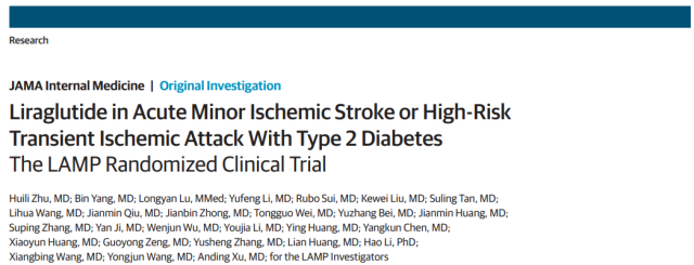 暨南大學(xué)融媒體中心訊 2025年11月4日,暨南大學(xué)附屬第一醫(yī)院神經(jīng)內(nèi)科徐安定/朱慧麗教授團(tuán)隊(duì)以原創(chuàng)性論著形式在JAMA Internal Medicine (雙TOP 1區(qū))在線發(fā)表題為《Liraglutide in Acute Minor Ischemic Stroke or High-risk Transient Ischemic Attack with Type 2 Diabetes Mellitus: The LAMP Randomized Clinical Trial》的多中心隨機(jī)對(duì)照臨床研究結(jié)果。該研究首次報(bào)道GLP-1RA利拉魯肽聯(lián)合標(biāo)準(zhǔn)的卒中二級(jí)預(yù)防策略可顯著減少90天卒中復(fù)發(fā),并減少殘疾風(fēng)險(xiǎn),為進(jìn)一步降低缺血性卒中的殘余復(fù)發(fā)風(fēng)險(xiǎn)及改善功能預(yù)后提供了新的研究思路及循證醫(yī)學(xué)證據(jù)。