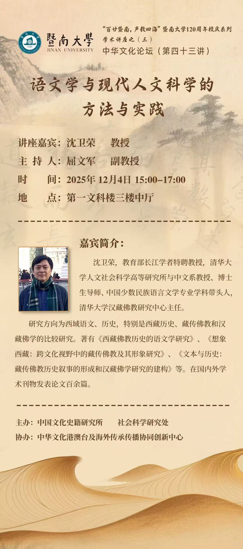 【百廿暨南,聲教四?!啃c系列學(xué)術(shù)活動(三)——語文學(xué)與現(xiàn)代人文科學(xué)的方法與實踐