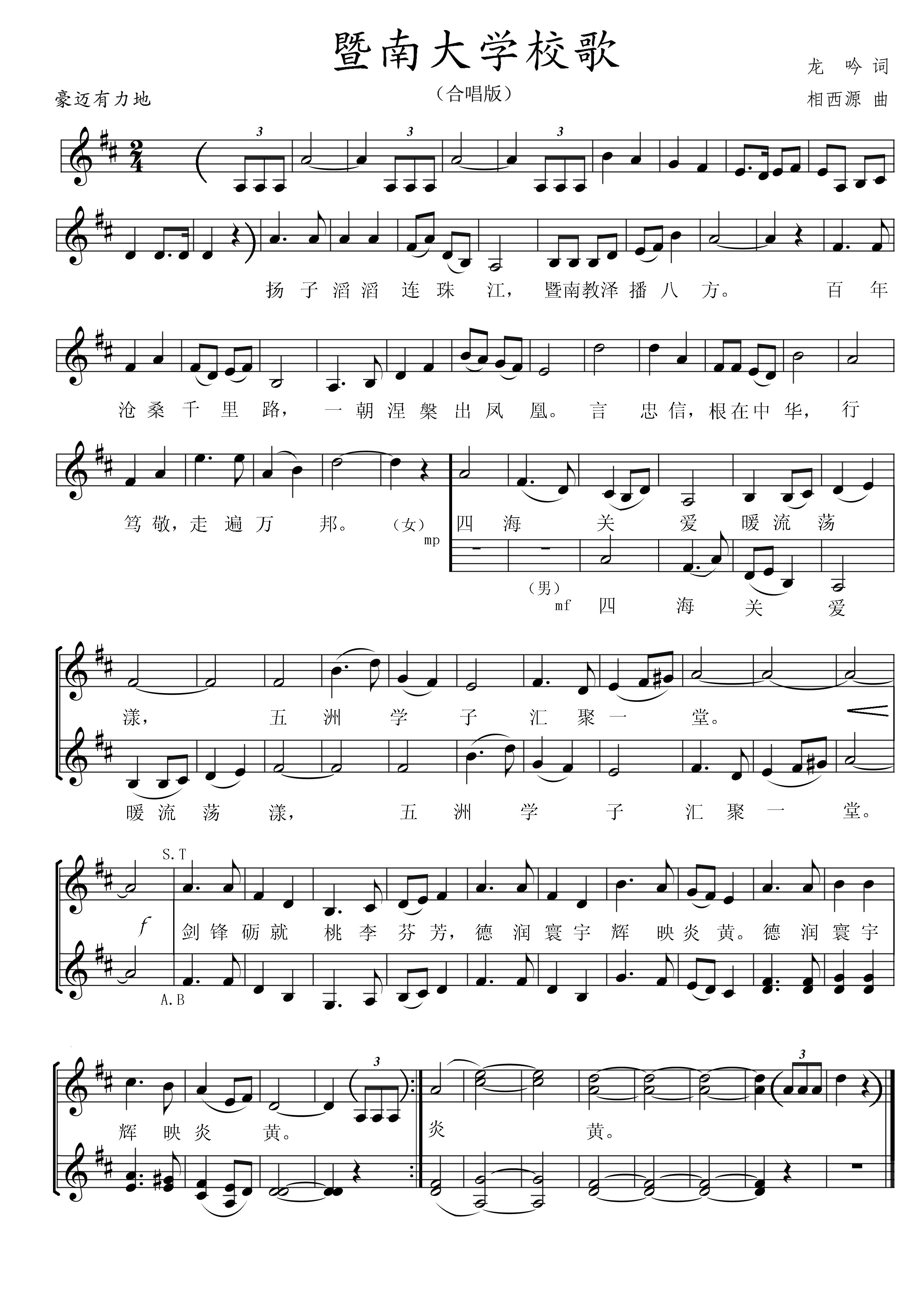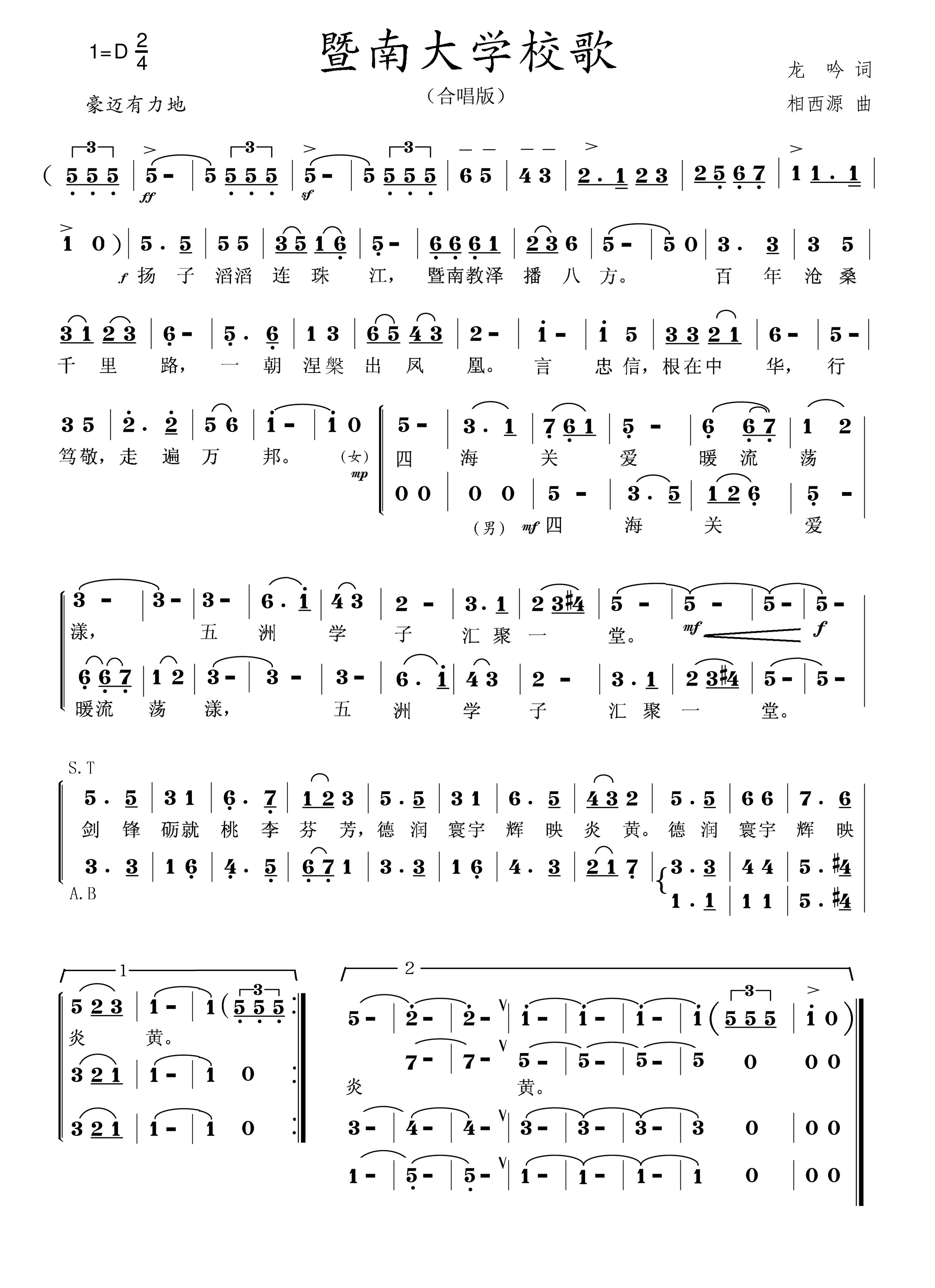 暨南大學校訓的出處及含義: 我校校訓“忠(zhong)信(xin)篤(du)敬(jing)” 四個字的出處十分古老?!墩撜Z·衛(wèi)靈公》篇記載說:孔子的學生子張問怎樣才能使自己到處行得通??鬃踊卮穑骸把灾倚牛泻V敬,雖蠻貊之邦,行矣。言不忠信,行不篤敬,雖州里,行乎哉?”翻譯成現(xiàn)代漢語,即是說:“言語忠誠老實,行為敦厚嚴肅,即使到了別的國家,也行得通。言語欺詐虛偽,行為輕浮狂妄,就是在本鄉(xiāng)本土,難道行得通嗎?”其內容包括了“言”和“行”兩個方面,也就是一個人立身行事的全部內容,是很全面的。